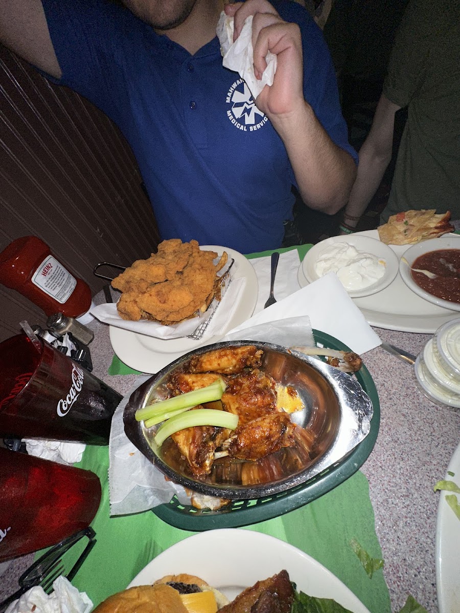 The chicken club was colossal!! The burger with Swiss was just delicious n juicy. The pickles r good 2. The coffee's not bad....didn't like the Buffalo wings. I asked 4 them 2 make them well done n boy did they! Lol, I did ask 4 grilled onions on my burger n I must say the onions where grilled nicely! The food was on point. Did I mention how big the chicken club is lol go enjoy!