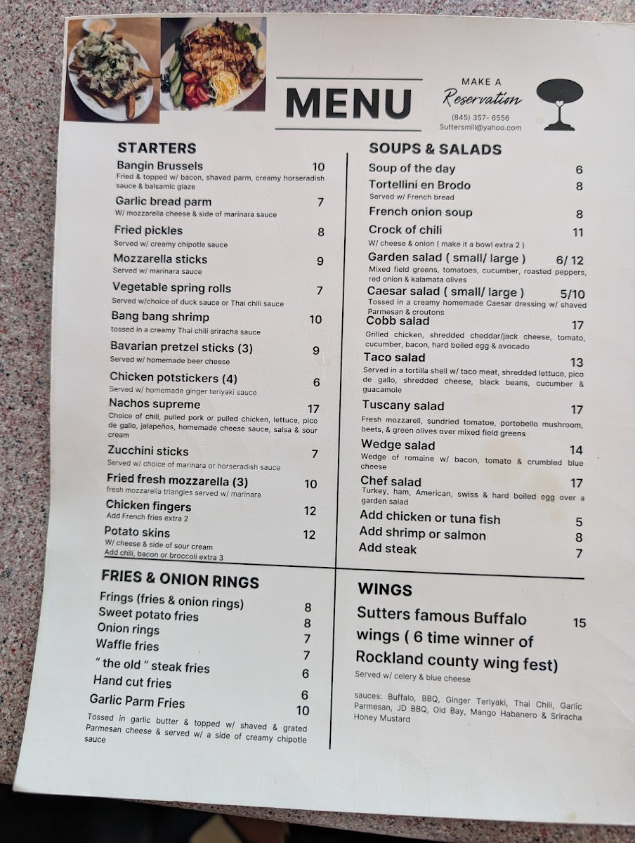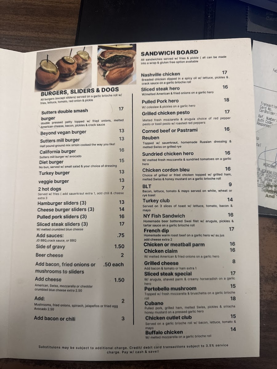 Sutter's Mill offers a straightforward menu that blends casual bar and grill favorites with a solid selection of comforting drinks. The food tends toward familiar, satisfying bites—think hearty sandwiches, crispy fried seafood baskets, and generous portions perfect for sharing or a filling solo meal. The drinks list features a variety of gin options, alongside classic liqueurs and a range of soft drinks, making it easy to find something to complement a relaxed afternoon or evening.